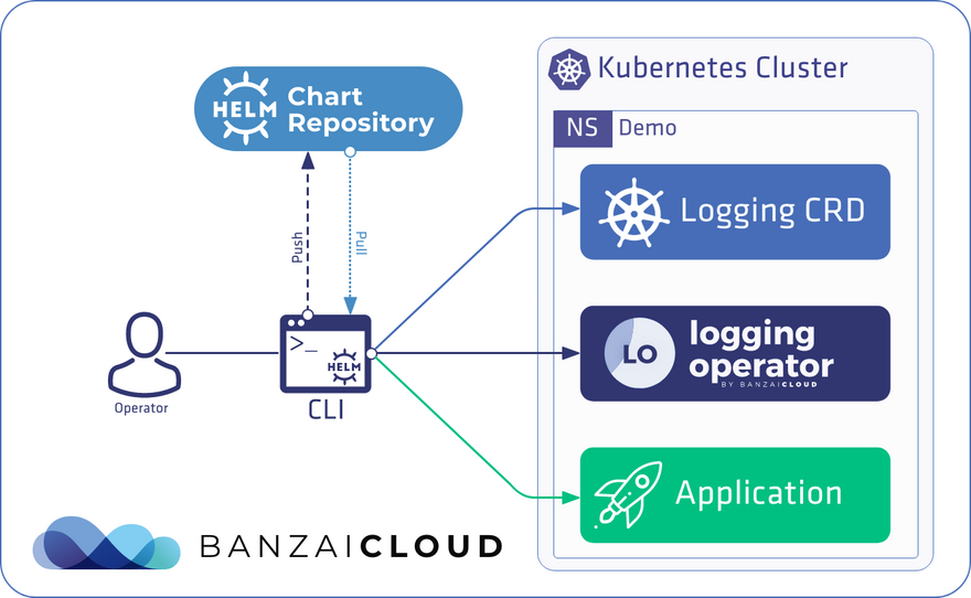 The Helm CLI is used to install the chart. Helm uses the YAML files in the chart to create the corresponding Kubernetes resources in the cluster.