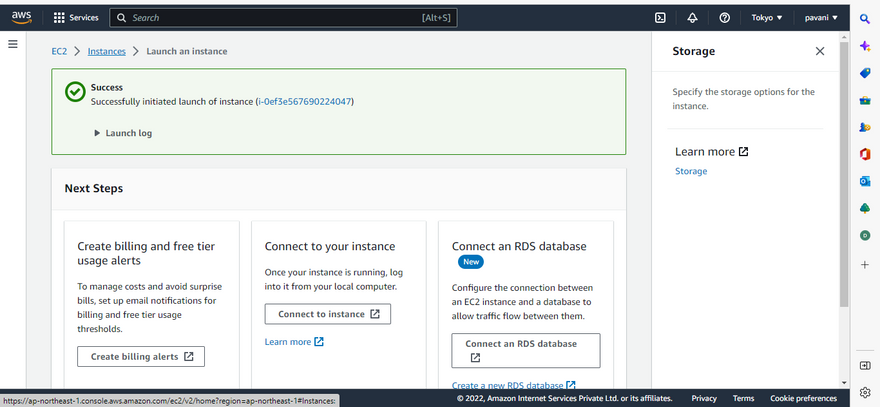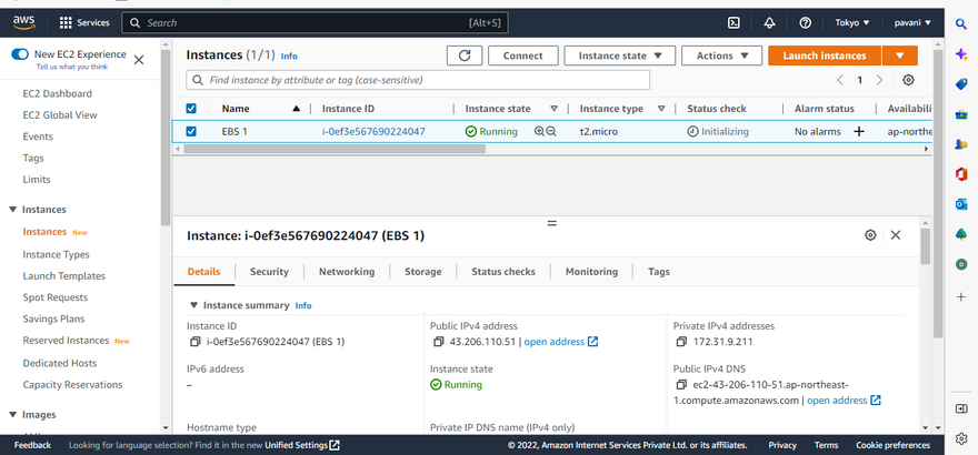 On the Instances screen, we can view the status of the launch. It takes a short time for an instance to launch. When you launch an instance, its initial state is pending. After the instance starts, its state changes to running and it receives a public DNS name