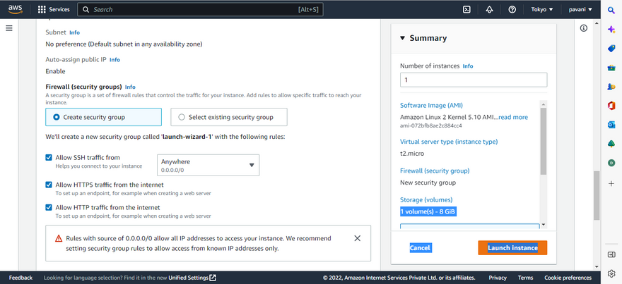 Step 11: Click launch instance button