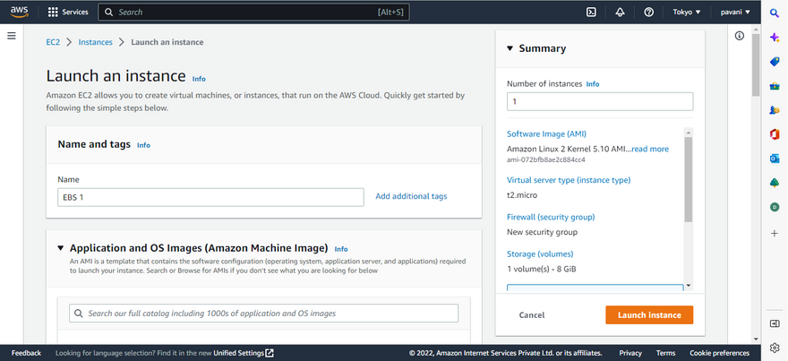 Step 4: Choose the AWS image for EBS1