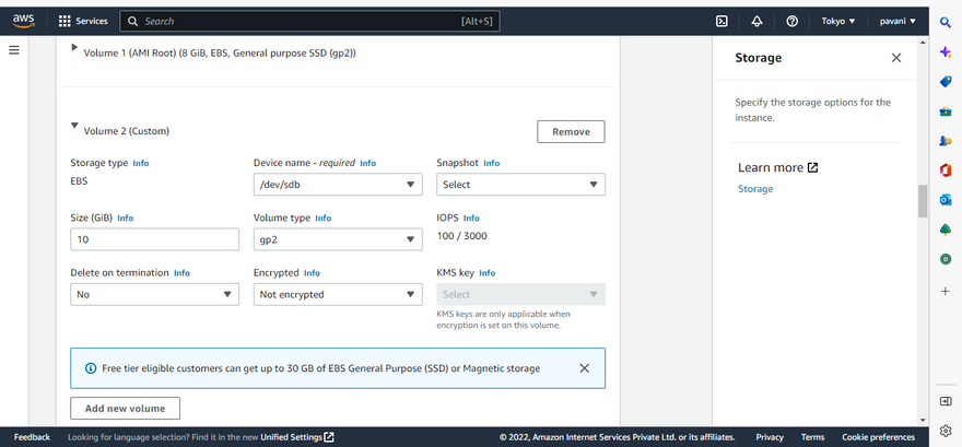 Step 8: click on the add volume for extra EBS1