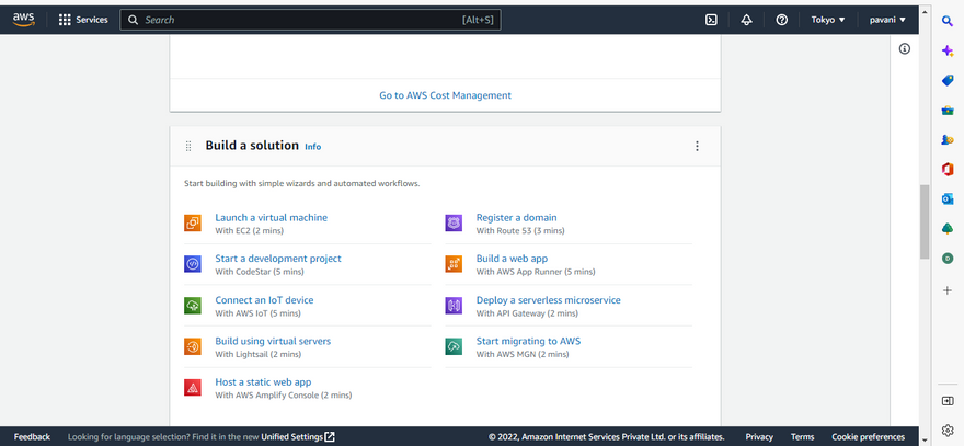 step 1: Go to console home > Build a solution > launch a virtual