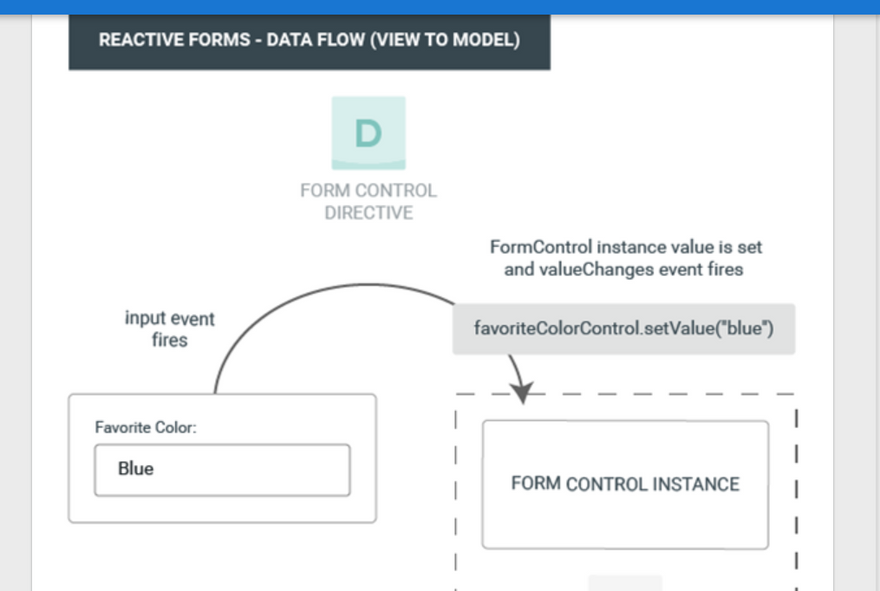 - The control value accessor attached to the input triggers the setValue() method on the FormControl instance.