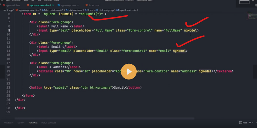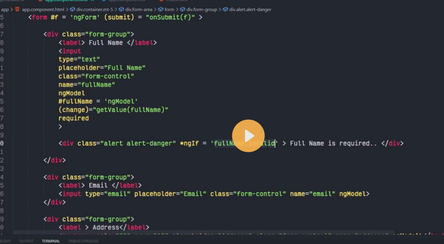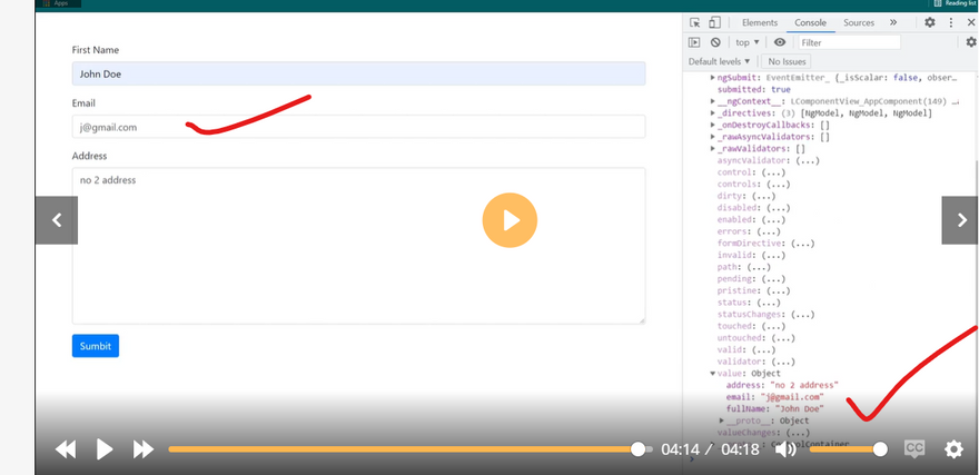 When an application contains a form, Angular must keep the view in sync with the component model and the component model in sync with the view. As users change values and make selections through the view, the new values must be reflected in the data model. Similarly, when the program logic changes values in the data model, those values must be reflected in the view.