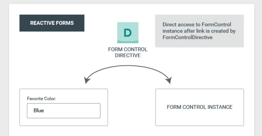 Figure 1 shows how, in reactive forms, the form model is the source of truth; it provides the value and status of the form element at any given point in time, through the [formControl] directive on the input element.