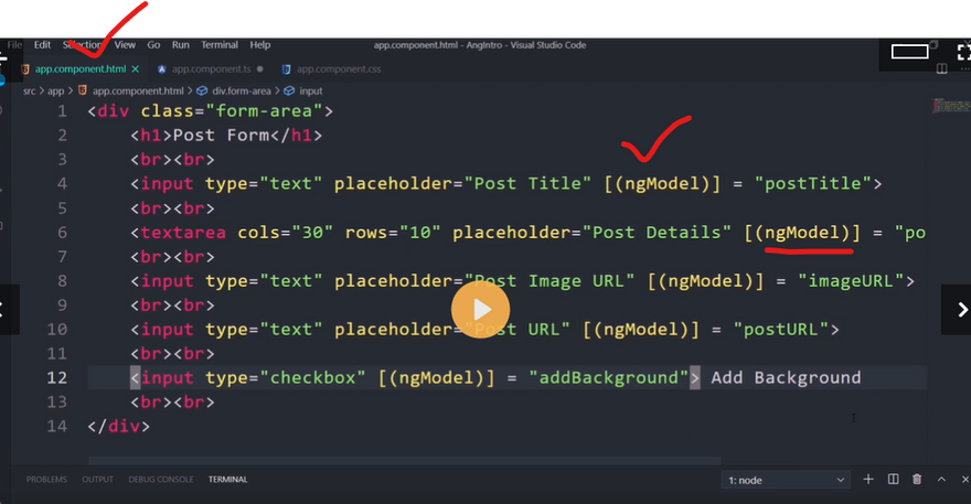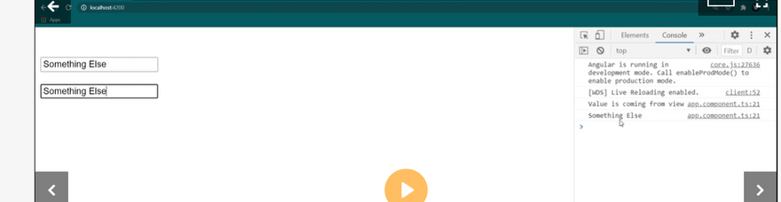 - When the button is clicked, I am displaying the ‘companyBlogs’ value. *Two-Way Data Binding * Two-Way Data Binding helps us to exchange data from both sides, i.e., from component to view and from view to the component.