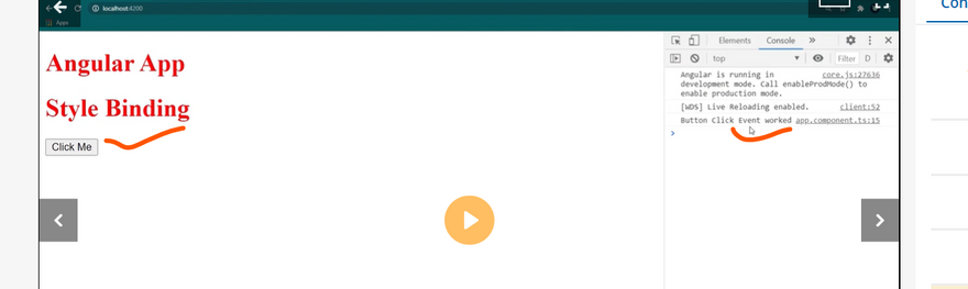 The Style Binding uses the [] brackets. Place the CSS Style property (binding target) inside the square bracket. The CSS Style property must begin with ‘Style’ followed by a dot (.) and then style name.