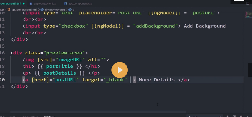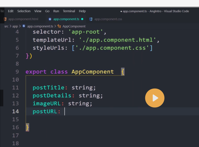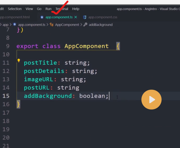 - In the TypeScript file, I have two properties - ‘companyBlogs’ of type string and ‘isShow’ of type boolean.