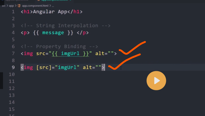 Property binding is used to bind values to the DOM properties of the HTML elements.
