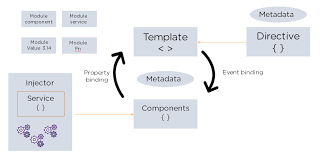 - two-way binding Bindings always have two parts: a target which will receive the bound value, and a template expression which produces a value from the model.