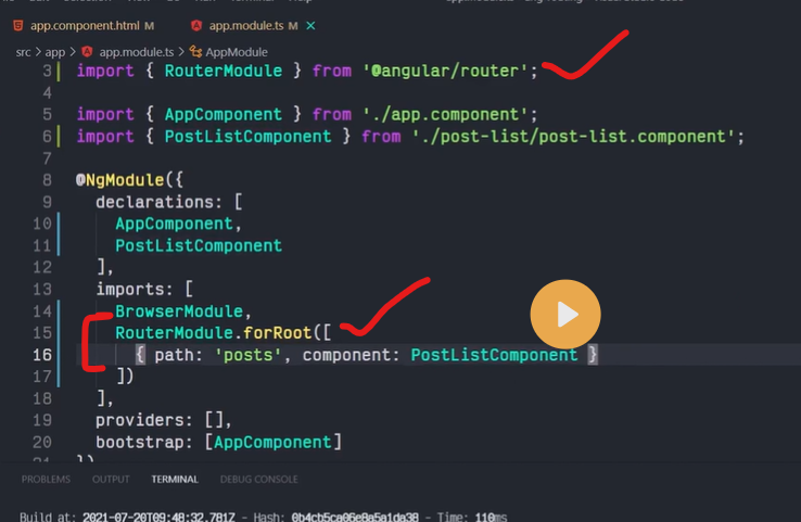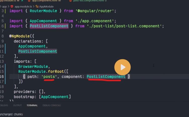 If this route definition is provided to the Router configuration, the router will render ContactListComponent when the browser URL for the web application becomes /contacts.