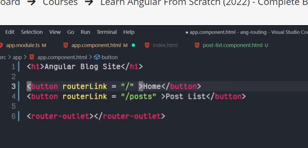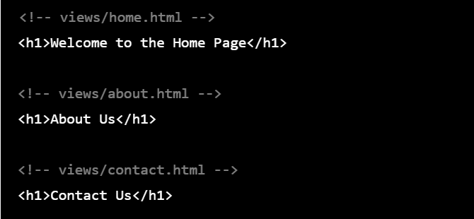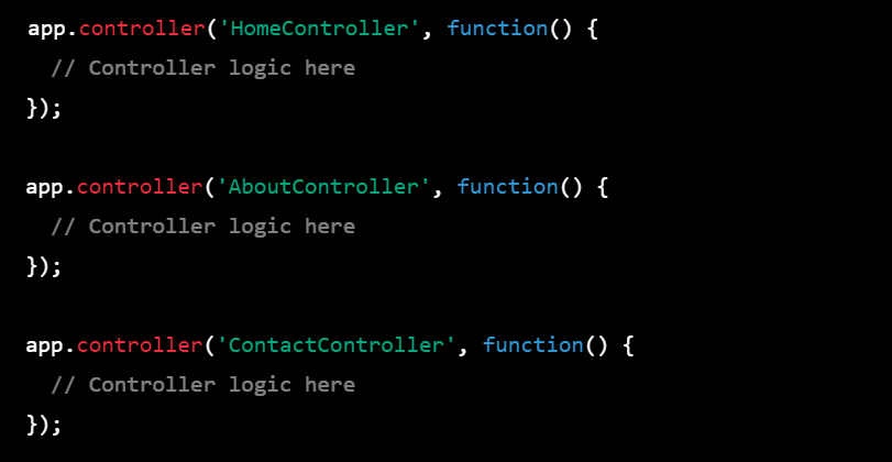We've also created three controllers, one for each view, and three HTML templates, one for each view. In our HTML template, we've set up a navbar with links to navigate between the views using the href attribute and the # symbol to indicate that we're navigating within the same page.