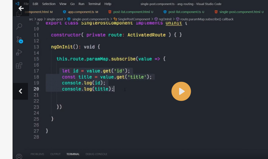 Creating routes with parameters is a common feature in web apps. Angular Router allows you to access parameters in different ways: