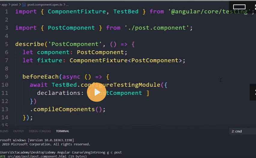 The best way to create a component is with the Angular CLI. You can also create a component manually.