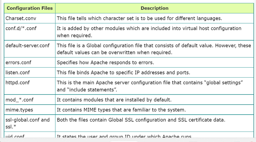 - It is stored in path : /etc/httpd/conf/httpd.conf.