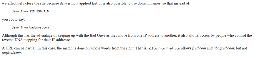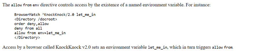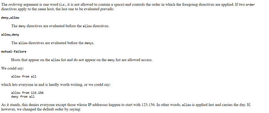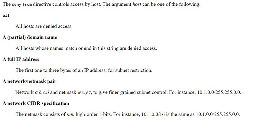 The allow directive controls access to a directory. The argument host can be one of the following:
