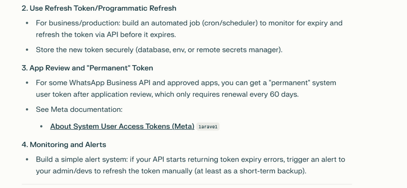 Final advice: Automate the token refresh flow, store tokens securely, and monitor for expiry! Relying on manual updates is not scalable for production.