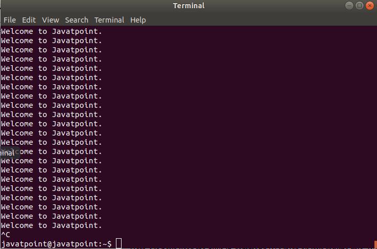 while :; do echo "Welcome to Javatpoint."; done