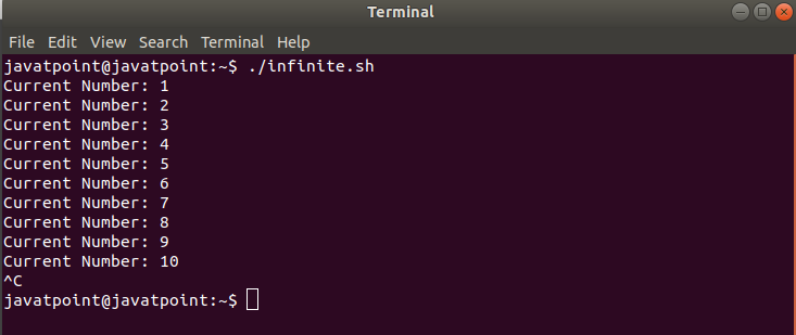 Here, we have used the built-in command (:) which always return true. We can also use the built-in command true to create an infinite loop just as below: