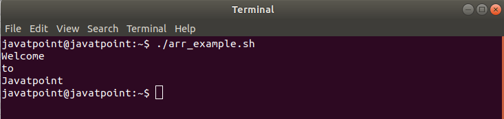 arr=( "Welcome""to""Javatpoint" )