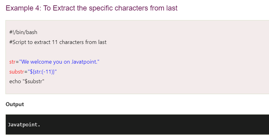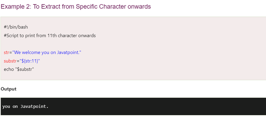 A substring is a sequence of characters within a string. Bash provides an option to extract the information from a string itself. You can extract the digits or a given string using several methods.