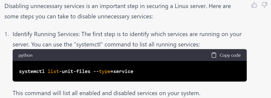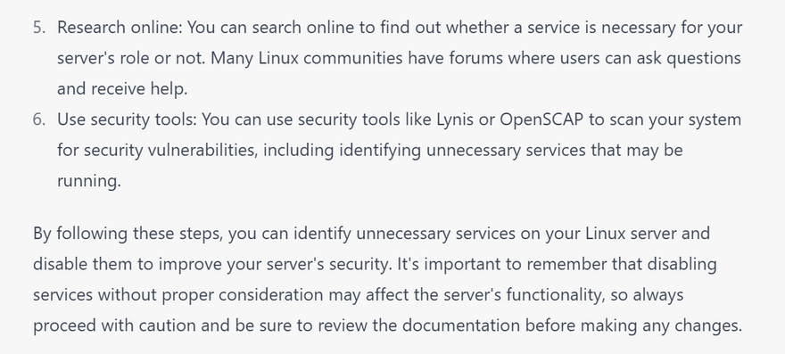 how to know what are the unnecessary services for securing linux server with examples