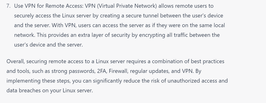 Securing a Linux server involves taking a variety of measures to prevent unauthorized access, protect sensitive data, and ensure system availability. Here are some best practices for securing a Linux server:
