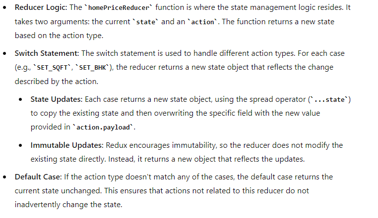 - Handle the New Action in the Reducer (homePriceReducer.js) Next, update the reducer to handle the new action type. Add a new case to the switch statement: