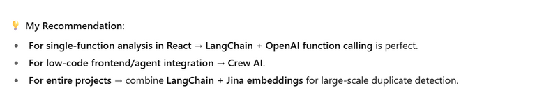 create ai agent or agentic ai where i can detect unused variable or duplicate code of given function using LangChain + OpenAI function calling