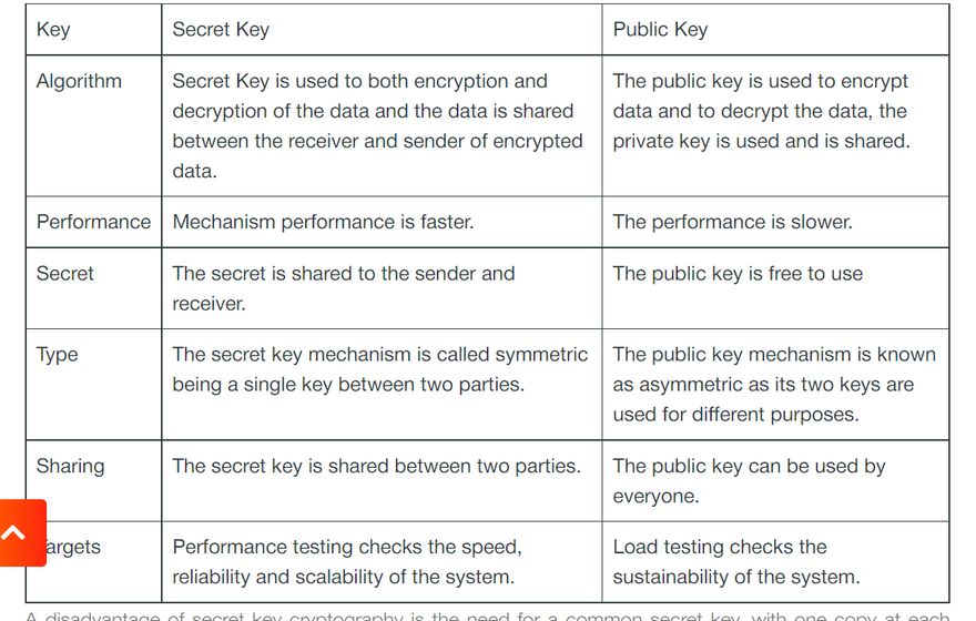 Below is the difference between secret-key cryptography and public-key cryptography: –