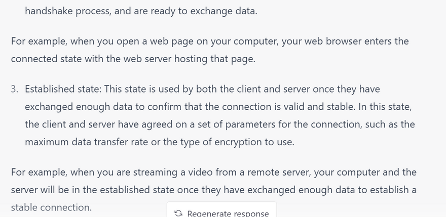 These are some of the most common TCP connection states. It is important to note that not all connection states may be used in every connection, and some connections may go through additional states depending on the specific protocol being used.
