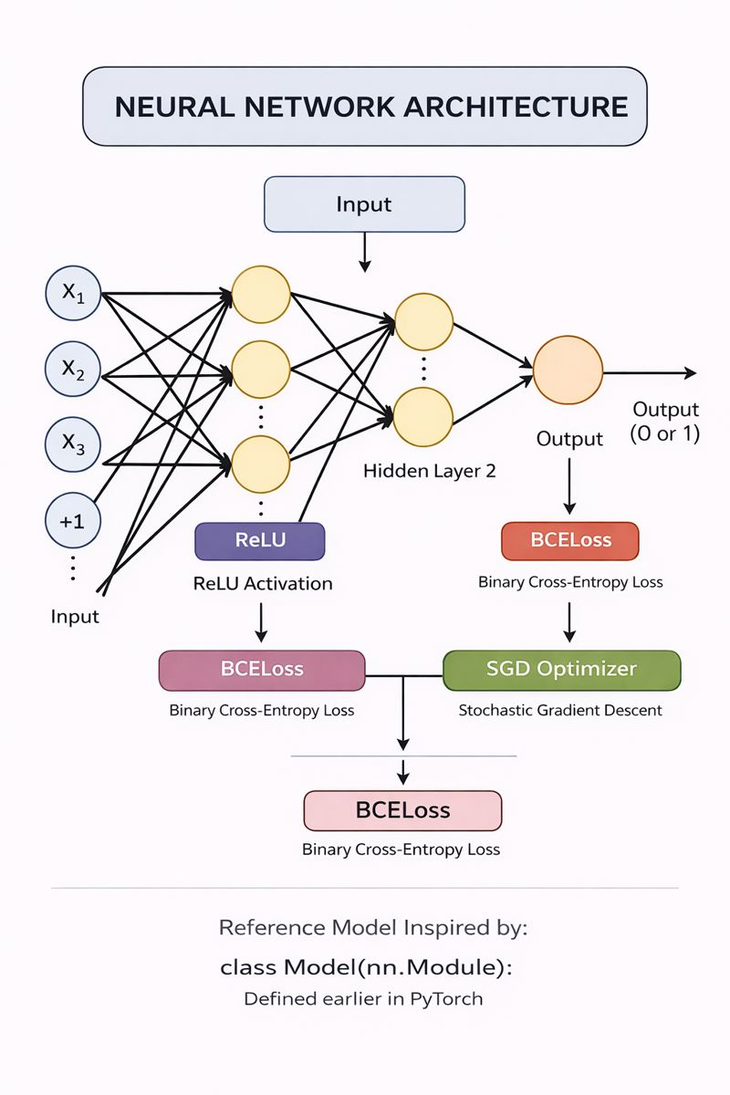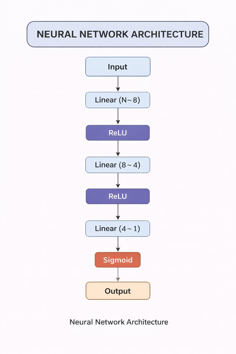 X → fc1 → relu1 → fc2 → relu2 → fc3 → sigmoid → Output