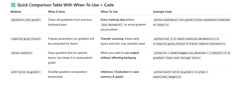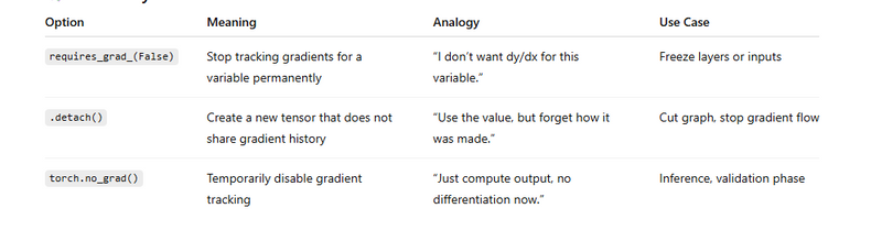 Stopping gradients / turning off autograd (what your screenshot lists)