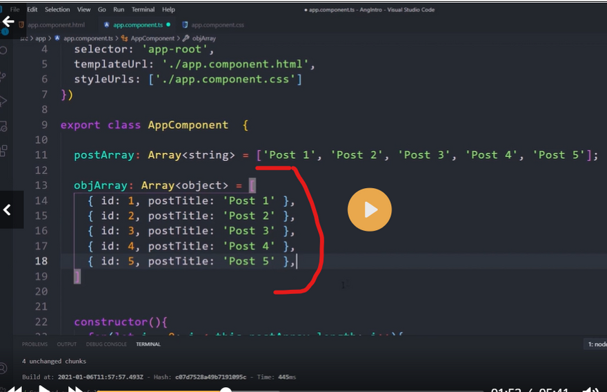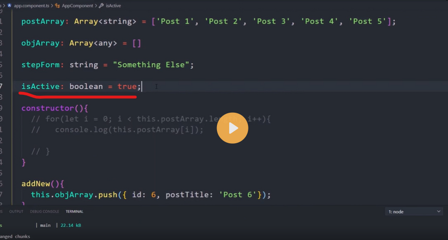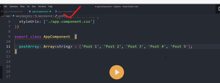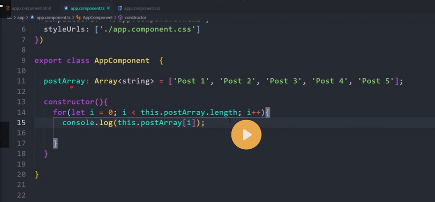 On the element you'd like to style, add [ngClass] and set it equal to an expression. In this case, isSpecial is a boolean set to true in app.component.ts. Because isSpecial is true, ngClass applies the class of special to the