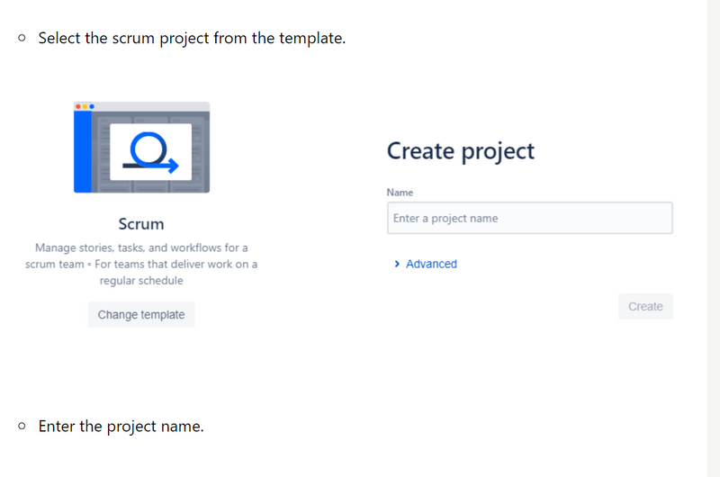 Steps to create a Scrum project