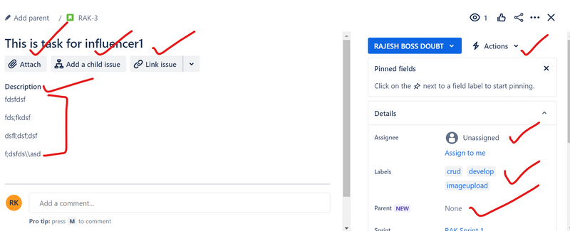 An issue is also known as user story. In scrum board, an issue contains all the tasks, dependencies, and other relevant information required to perform a single piece of work.