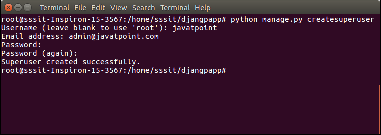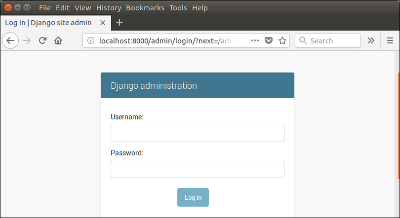 To access it at browser use '/admin/' at a local machine like localhost:8000/admin/ and it shows the following output: