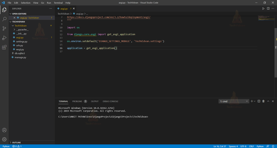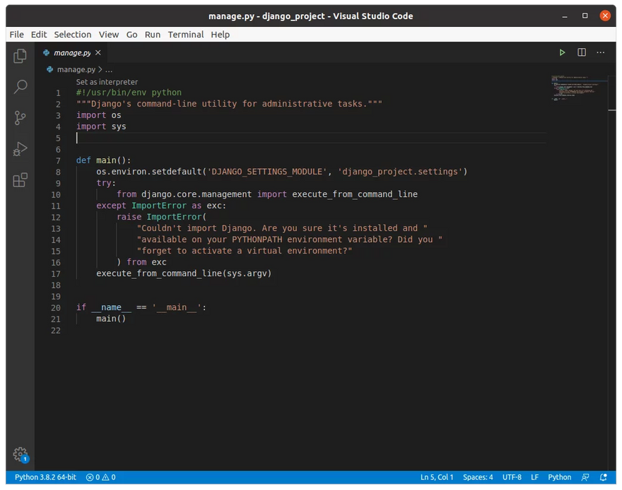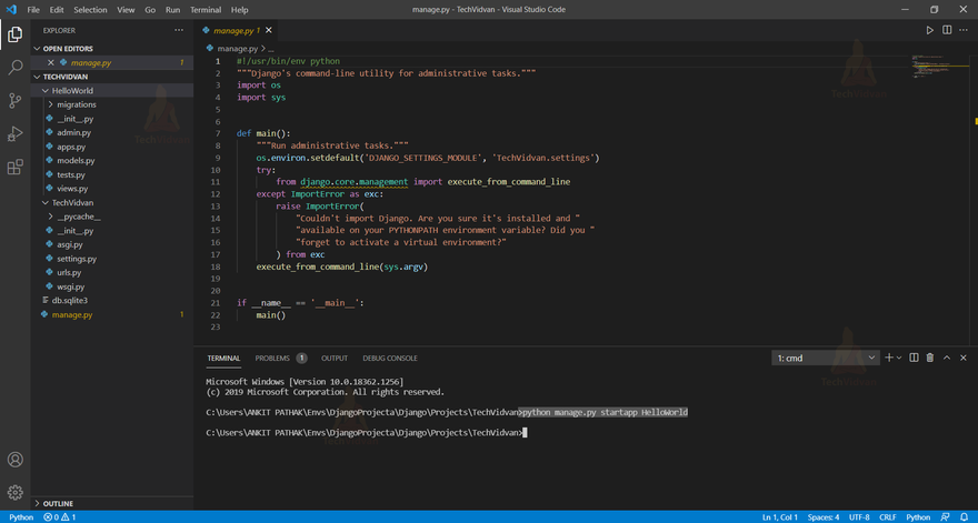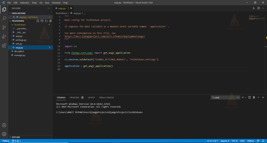 This is what the default Django project structure looks like. Let’s understand the functions of the files that are shown in the above image to help you get a context of what a project folder consists of.