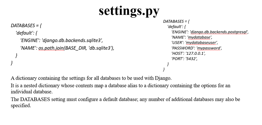 It contains sqlite3 as the default database. We can change this database to Mysql, PostgreSQL, or MongoDB according to the web application we create.