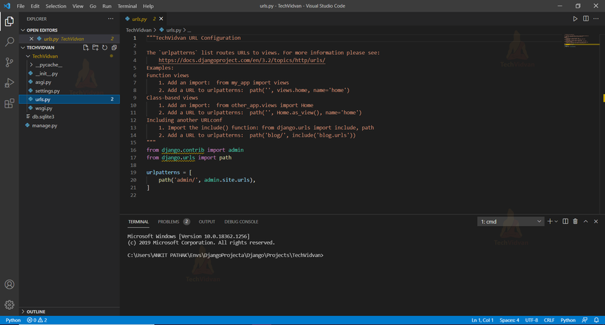 In simpler words, this file tells Django that if a user comes with this URL, direct them to that particular website or image whatsoever it is.