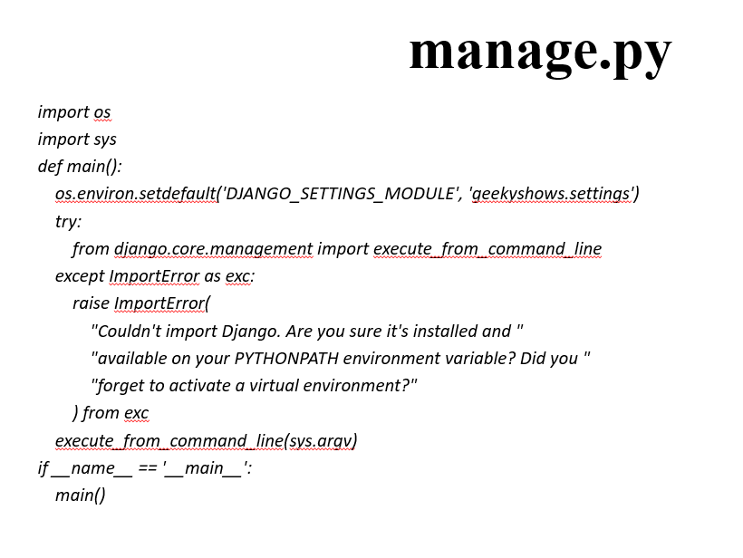 This file contains code for runserver, or makemigrations or migrations, etc. that we use in the shell. Anyway, we do not need to make any changes to the file.