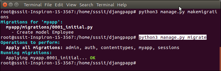 Django provides the various commands that are used to perform migration related tasks. After creating a model, we can use these commands.