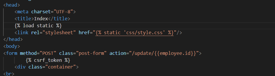 Locate the line that contains the template tag.