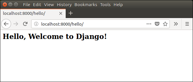 Open any web browser and enter the URL localhost:8000/hello. It will show the output given below.