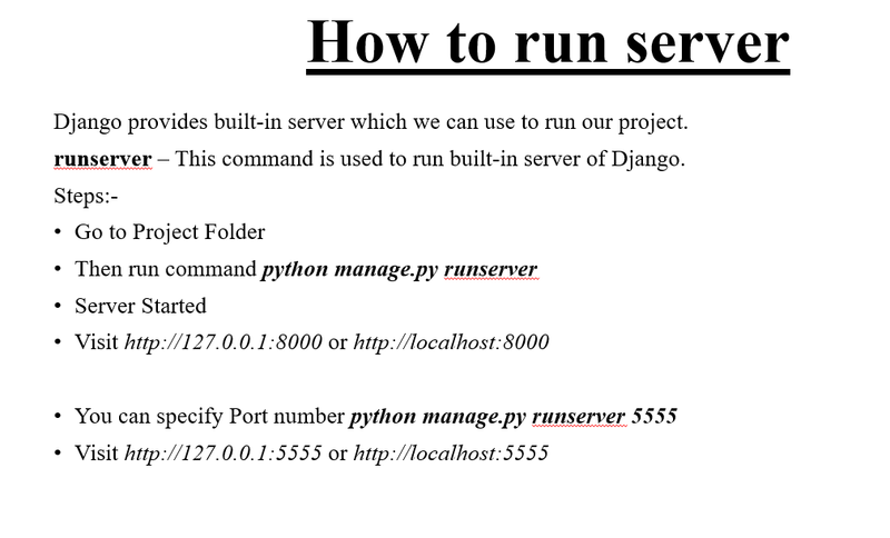 Django project has a built-in development server which is used to run application instantly without any external web server. It means we don't need of Apache or another web server to run the application in development mode.