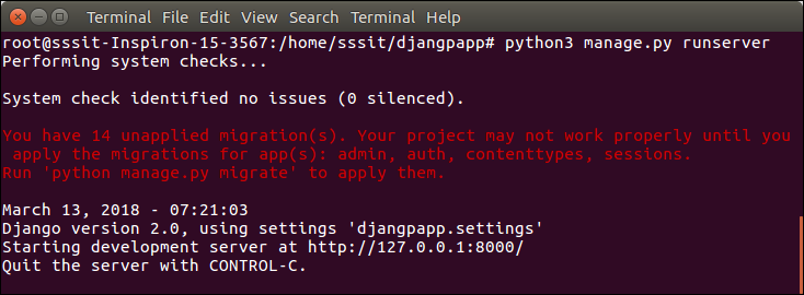 $ python3 manage.py runserver