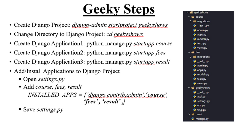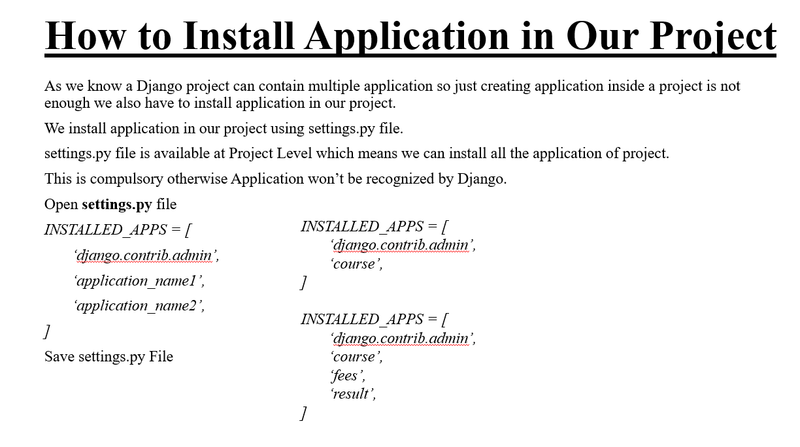 In the previous topic, we have installed Django successfully. Now, we will learn step by step process to create a Django application.