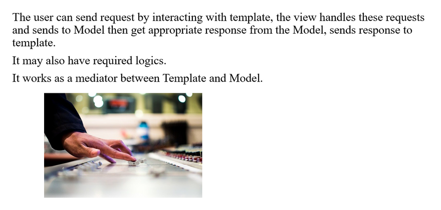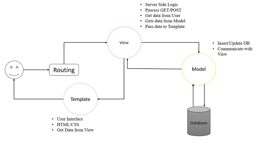 - The View then renders back an appropriate template along with the retrieved data to the user.