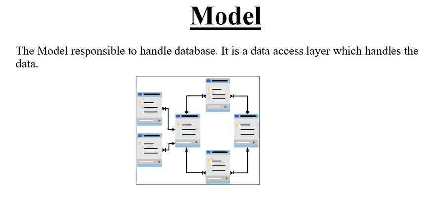 Model – A model provides the interface for the data stored in the Database. It is responsible for maintaining the data and handling the logical data structure for the entire web application.