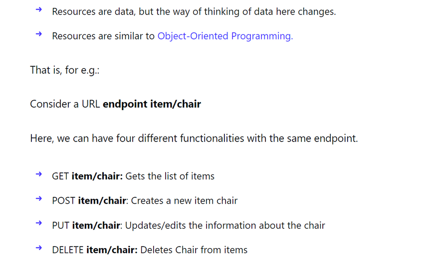 Therefore, now we can think of our interaction with the server as not with individual endpoint requests but with resources(having the same endpoint for different functionalities)